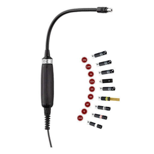 A gas sniffer is a handheld device used to detect the presence of hazardous or toxic gasses, especially in confined spaces or areas that are difficult to access. It works by drawing in air and analyzing it for the presence of particular gasses, such as combustible gasses. They are commonly used in applications like leak detection, safety inspections, and maintenance tasks to identify potential gas leaks or hazards.